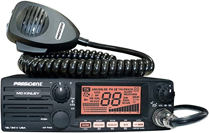 President Electronics President Electronics MC KINLEY USA Hm AM/SSB Tranceiver CB Radio, 40 Channels, 7 Weather Channels, Channel Rotary Switch, Volume Adjustment and ON/OFF, Multi-functions LCD Display, 12/24V